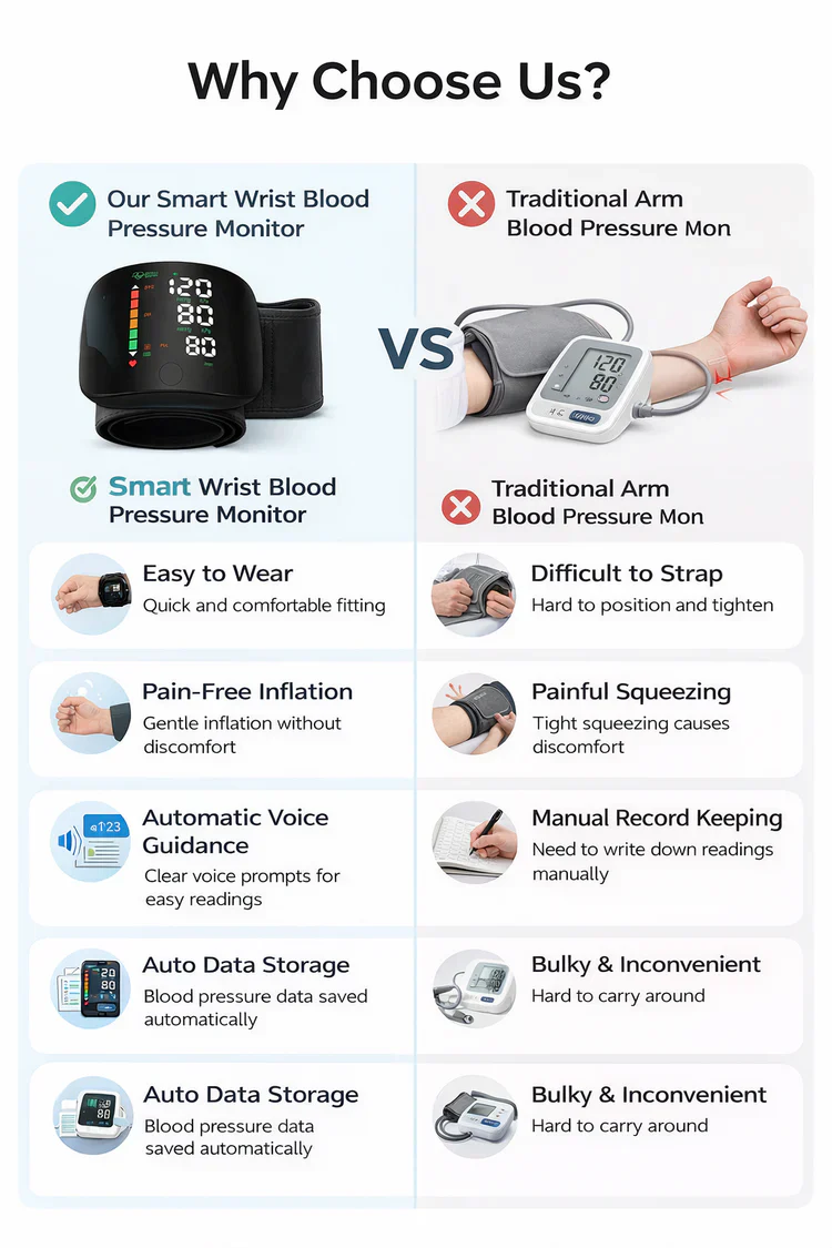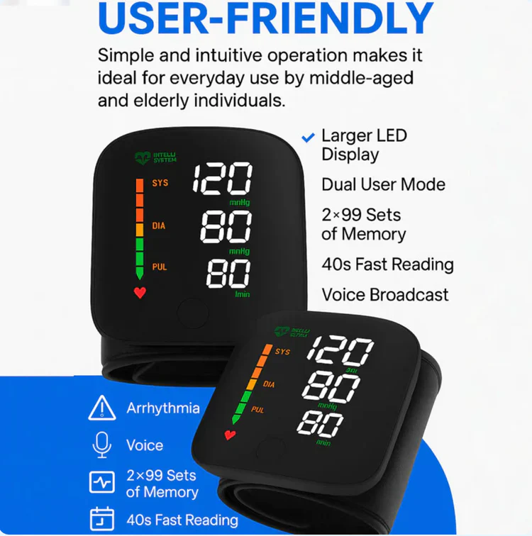 A smart wrist blood pressure monitor lets you quickly and easily check your blood pressure without needing a bulky machine. Its portability and Bluetooth connectivity mean you can monitor trends over time, share data with your doctor, and stay proactive about your cardiovascular health â all from your wrist.